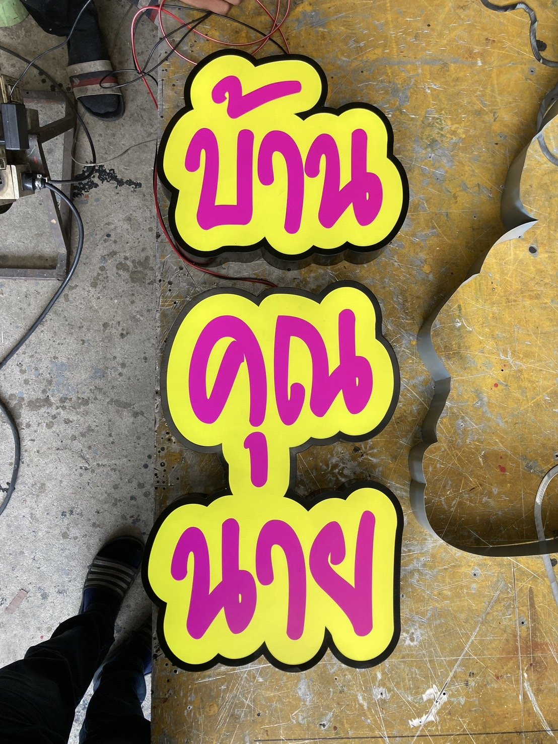 ตัวอักษรพลาสวูดทำสี ติดบนพื้นพลาสวูด