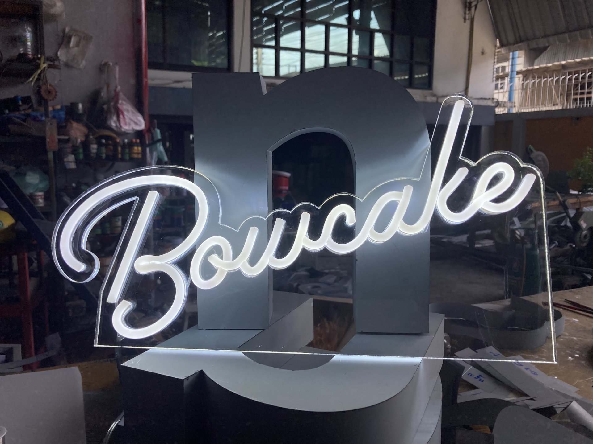 ตัวอักษรไฟออกหลังพร้อมพื้นคอมโพสิท
